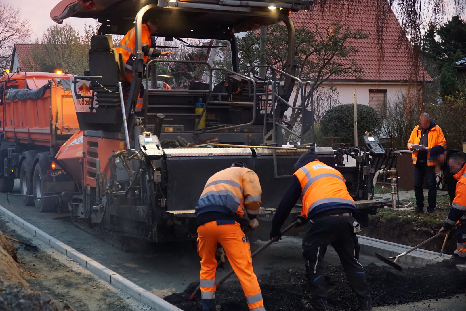 Montag, 30.11.2020: Um 8.00 Uhr steht die Schwarzdeckenkolonne für den Einbau der ersten Asphaltschicht bereit.
