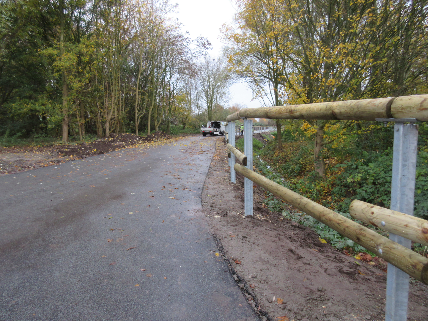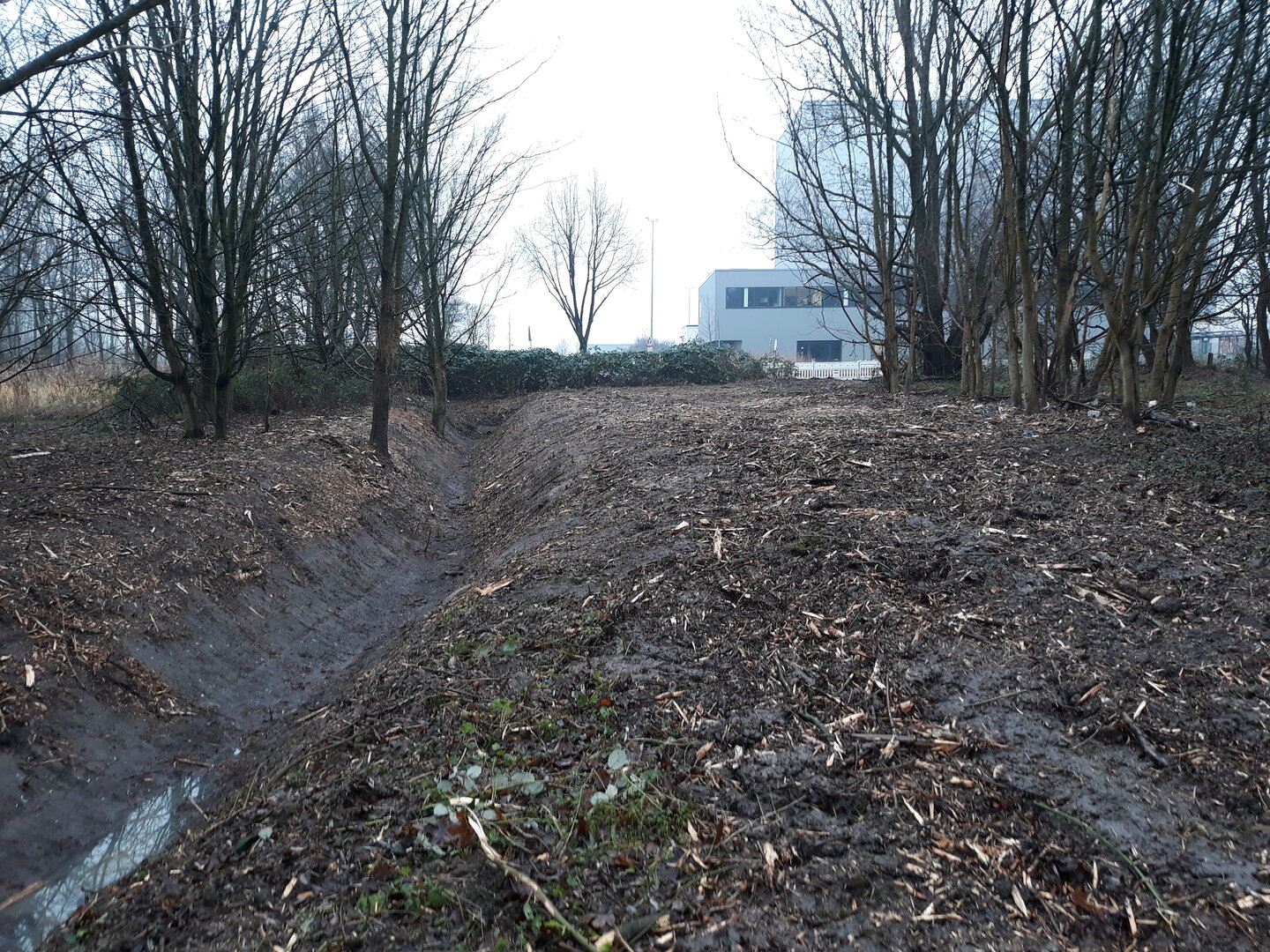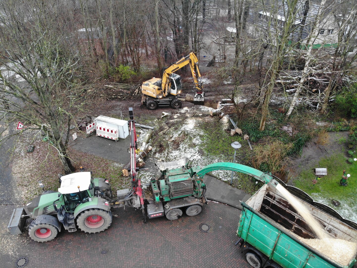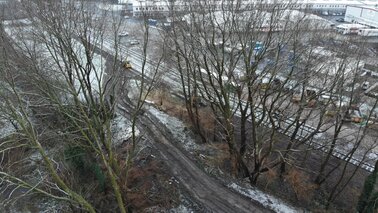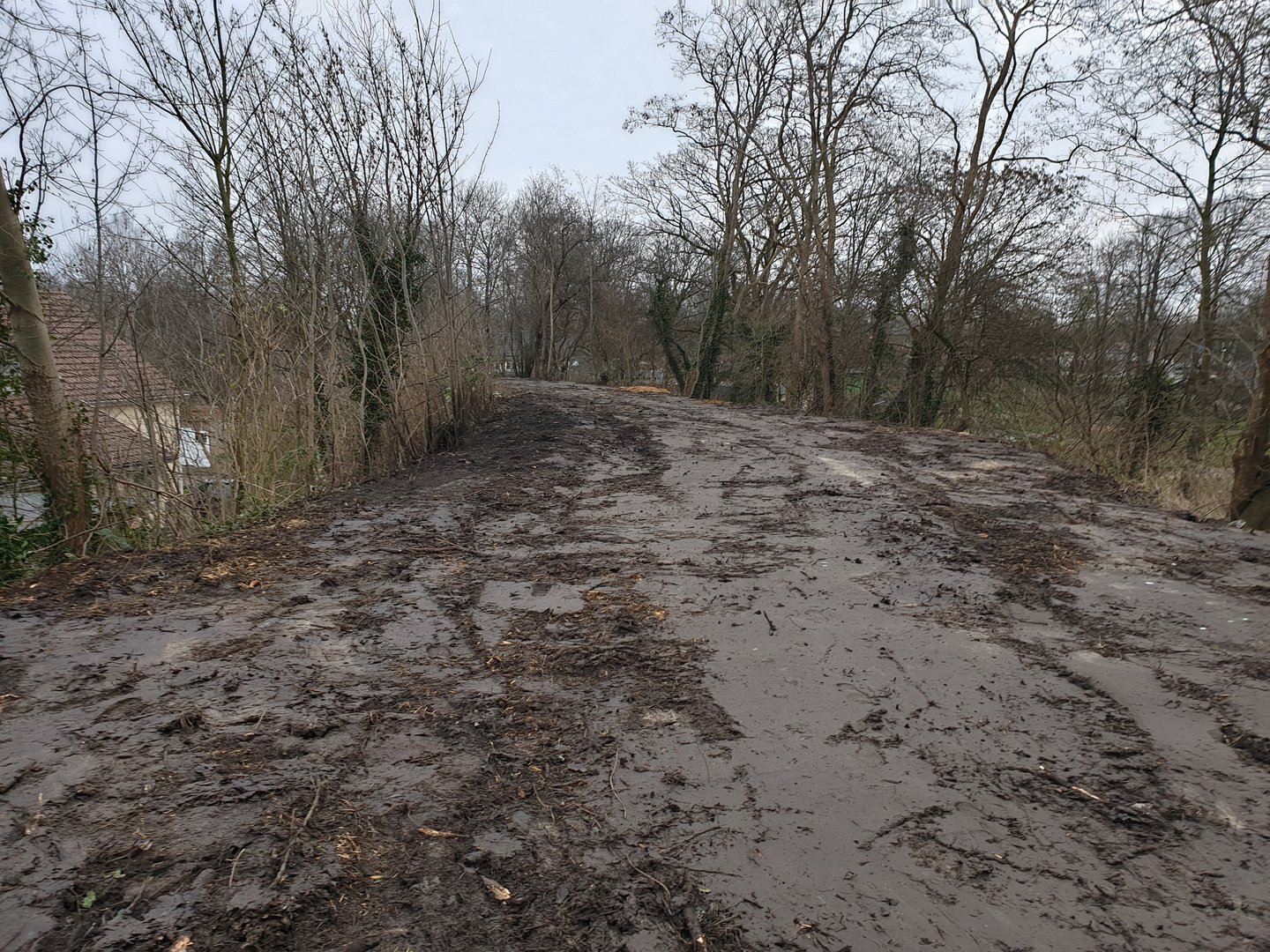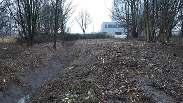Im Frühjahr 2021 werden die Arbeiten zur Herstellung des Radweges fortgesetzt. Vorab ist die Räumung des sogenannten Baufeldes erforderlich. Zu diesem Zweck müssen alle Büsche, Hecken, Sträucher und Bäume im Trassenverlauf außerhalb der Brut- und Setzzeit entfernt werden. Ein acht Meter breiter Korridor wurde auf diese Weise freigeräumt. Die großen Weiden wurden größtenteils erhalten, die kleineren Bäume hingegen gefällt und das Holz geschreddert. Die entnommenen Bäume werden zu einem späteren Zeitpunkt wieder ersetzt. Fachlich begleitet wurden die Rodungsarbeiten durch das Gartenbauamt und der unteren Naturschutz-/Waldbehörde.
