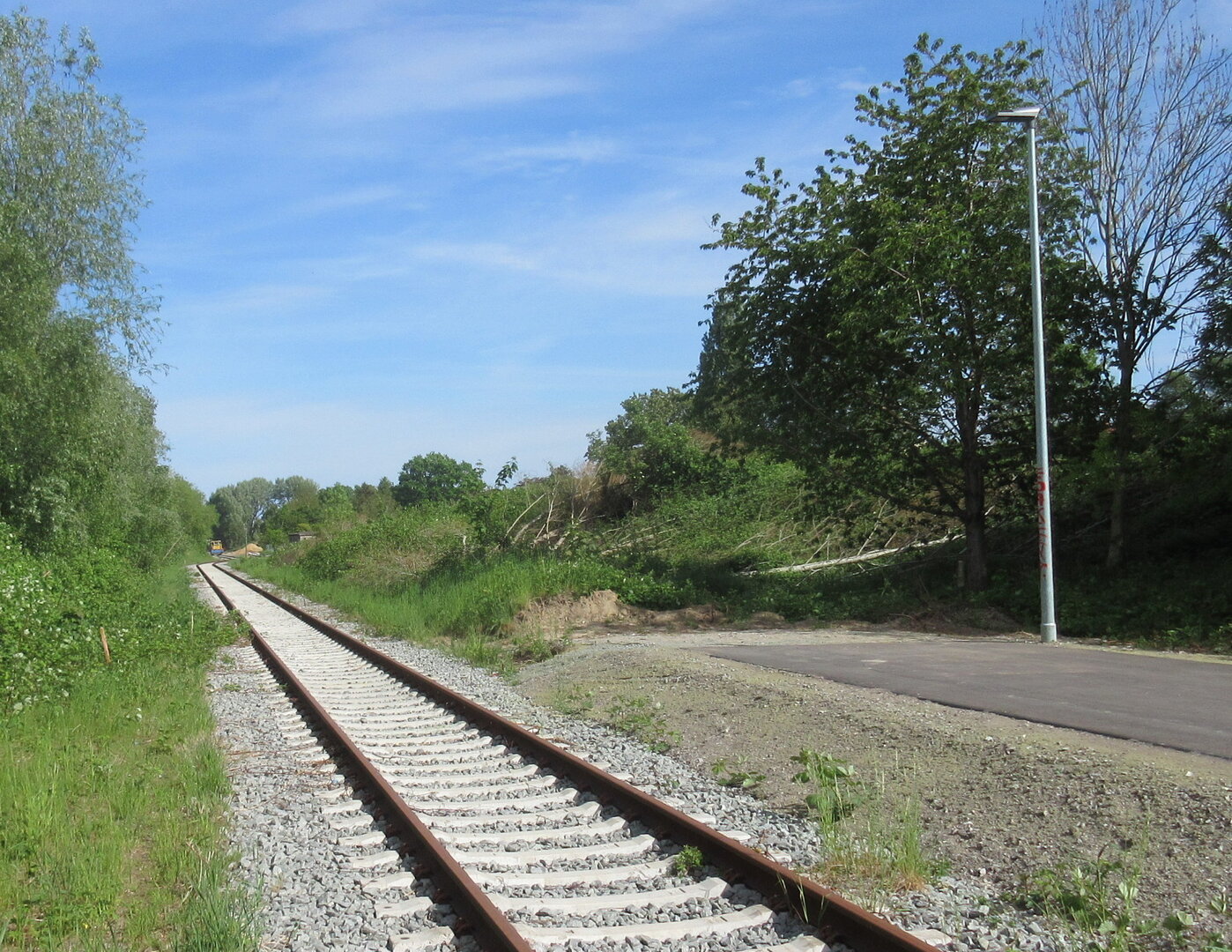 Nördlich der Radellstraße endet der Radweg vorerst. Hier fehlt noch der Anschluss über das Gleisbett der Deutschen Bahn.