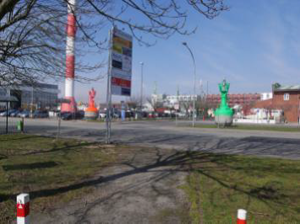 Die Integration der Knotenpunkte am Schaufenster Fischereihafen und der Straße Deichhämme ist Gegenstand der Maßnahme 2. Die Radwegeverbindung soll an ihrem nördlichen Ende an den stark frequentierten Verkehrsknoten am Fischereihafen und die hier zusammenlaufenden Radwege anschließen. Um die entsprechenden Knotenpunkte für den Radverkehr komfortabel zu gestalten und den Zugang zu Fahr(G)Rad 8 zu ermöglichen und zu erleichtern, müssen die entsprechenden Anschlussstellen und Knotenpunkte radfahrerfreundlicher gestaltet werden. Hierzu gehören die Knotenpunkte Hoebelstraße und Deichhämme.